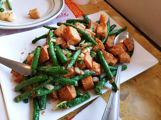Restaurant is bright and airy with actual space between the table to move. Waitstaff was very friendly and helpful, asking numerous times if there was anything that they could get for me even when I wasnt seated at one of their tables. And the food... Glorious! Vegetables were still brightly colored from having been in the wok only for a few moments, not dull, overcooked, and squashy as at so many places. The portions were large and satisying with great flavor. Sauces were light, not overpowering or over-salted. While this was my first visit, it will definitely not be my last.
