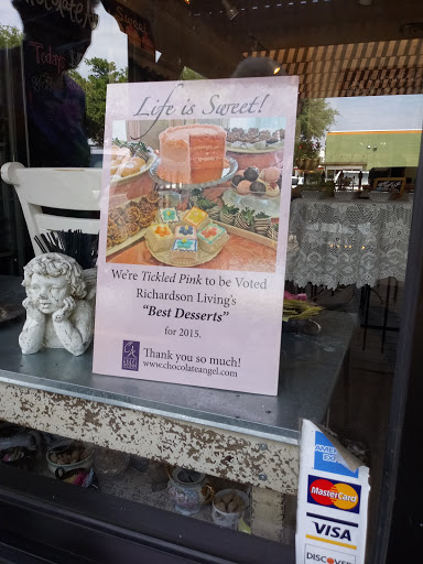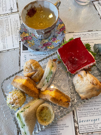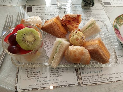 I have never dined at The Chocolate Angel. I have placed 3 orders for pick up. The first 2 orders were for vegetable & fruit trays which were very, very nicely done. The third order was for a "custom" cake and thumb print cookies for a Celebration of Life for a dear friend. I provided Melissa with a photo with the colors and image we wanted on the cake. The finished product was STUNNING!!! It felt as though so much Love and Care went into the beautiful and intricate design of the cake that represented our Belived. Words cannot express the deep gratitude the friends and family felt when they saw the beautiful cake AND when they tasted the cake!!! I always walk into the restaurant to place my order toward the end of the afternoon because I know they are crazy busy at peak lunch time hours. While Melissa seems rushed and not so warm at times, believe me... she and her team delivered a gorgeous cake and thumb print exceeded our expectations and warmed our hearts and souls. Melissa, Thank You from the bottom of our hearts.