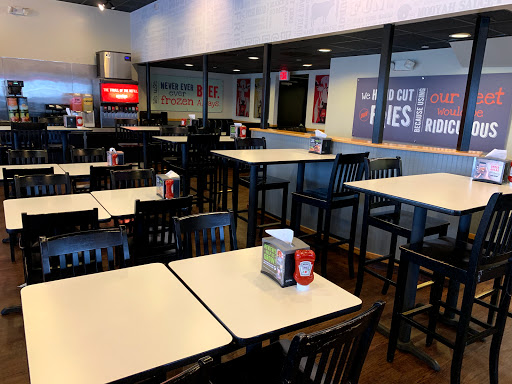 We always have good service here. The burgers are delicious. I usually get an iceburger, but Ive tried the white and wheat buns and both are tasty. The fries are huge--I can never personally finish a small, so my partner and I usually split a regular instead. If youve been to Five Guys, Id say the fry portions are similar to theirs. The shakes are good too. The only thing I havent loved is the salad--it was okay, but not particularly special. This locations really popular with families, so its frequently noisy and on the busier side, especially around normal dinner hours and on weekends.