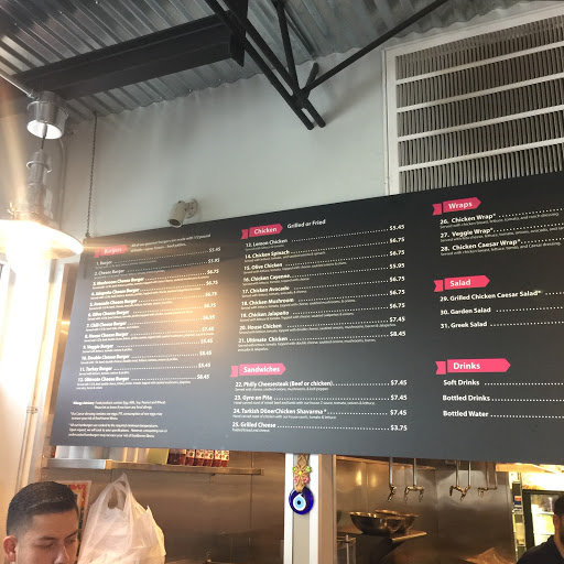 The food is incredible. I love the fried zucchini and french fries. I always get the Philly Cheesesteak sandwich, but Ive had other things too. The burgers are big. WONDERFUL place to go eat. Its all Halal too. Here is what needs to change... Its a tiny place. Very small literally hole in the wall restaurant. They need to move to a bigger facility. With that they will not only get double the business, but even triple. Its always packed in the small restaurant. Need more seating like 6x more. They need to sell items as a meal too. One should have that option. But its all a la carte. Nothing comes with your burger do be prepared to order fries and a drink separately. I dont like battered Onion Rings. I like panko crusted or breaded type. Their onion rings are battered. The hours suck.... Youd think they would be open more hours due to the amount of business they get. But no..they are open very limited hours.Close early even on weekends. The prices are high, but you get what you pay for. Its worth it.