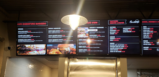 Omg, i am stupid excited to have found this place. Its bigger on the inside. Modern decor, clean, and super friendly staff are immediate. The menu is burgers, chicken sandwiches and a few specialties. What makes it awesome? They have every topping you can imagine. And all the fun sides in addition. Kid menu too. It took me 7 minutes with no wait ahead of me to get a couple of burgers and fried zucchini. They look and smell sooooo good.