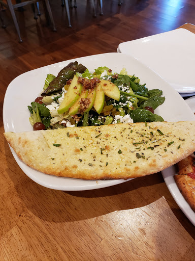 The pizza here nothing to recommend. Toppings are sparse,especially the cheese. My roasted portobellos and criminis pizza hardly had any mushrooms on the ppie. Very disappointing. It also took forever to move through the service line to place our parties order - painfully slow especially with only one cashier to take orders the process is a long wait!. WARNING - This place is loaded with small children and you you desire a family atmosphere with plenty of small children running around screaming and yelling then this will meet the criteria. Is definitely is a family friendly place. If its a quiet evening you are looking for - you will be disappointed.