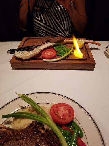 Good food good service but the prices are outrageous. I asked to have my steak served with Oscar. I got about a tablespoon of crab sauce on my steak and they charge me $15 extra for it. I ordered the dinner for two that came with a side. This evening they had a special side but it would cost a little extra to add it to the dinner for two. I agreed to the extra cost but little did I know $18 was the extra amount. I thought it might be eight or nine dollars more. I had a $50 Groupon that I dont think they even applied but they had so many different additions and subtractions to my receipt I couldnt make sense of it. I felt like I got Hornswoggle. I wont be back. theres other places to go get a good steak where you dont get hornswoggled.