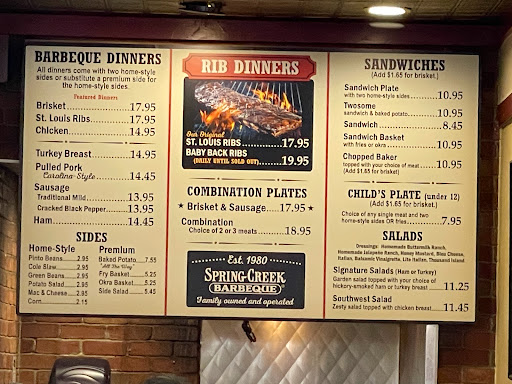 We have been to most BBQ places in the Richardson area (a lot in Dallas, Plano, and Ft Worth too), and Spring Creek is the best. From the Brisket, ribs and turkey to the potato salad, beans, and condiments... and the fresh, hot (right out of the oven) mini-bread loaves. The food is aces. The staff and management are usually smiling and make an effort to be friendly. Oh! Almost forgot the fresh fried okra... be sure to order it right away, as you are ordering your meat; it takes a few minutes to get it to your table (hey... it’s fried to order); you can even get it fried extra long for extra crispy, just like I like it. They do have fresh baked peach cobbler with ice cream that is also awesome, but with free refills on all the sides I personally never have room left to put it.