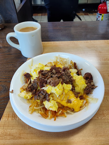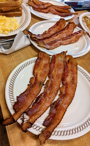 I walked in, seated at a booth to myself, ordered a cup of coffee, and my All Amercan breakfast w/o toast, add hash browns scattered and smothered, grits, bacon crispy, eggs soft scrambled and my infamous waffle with hot syrup. My eggs and grits were cold, my waffle looked as if it was on a diet thin and see through. The up side looked ok until I picked it up. The other side looked as if they struggled to get it out of the waffle iron. My hot syrup showed up before my waffle!!! Really?! So, my breakfast consisted of hash browns, bacon and coffee. Oh, did I mention that this was my first time visiting this location? My waitress was awesome! She apologised for the fiacso and told me I didnt have to pay. I left her a tip anyway for her services. I woke up to a power outage, other than that I would have cooked. This spot can be VERY busy, but the people were extremely welcoming and accommodating.