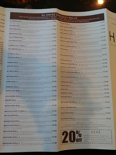 Great atmosphere, friendly service, and reasonable prices. the 50 states sushi rolls are unique twist.