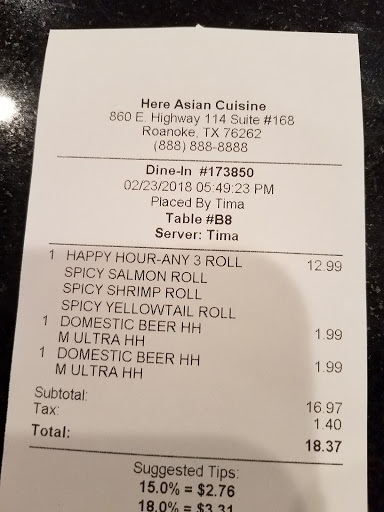 Sushi is pretty good especially for the price. 12.99 for 3 rolls during happy hour which lasts till 7pm. Place is clean and wait staff is very friendly.