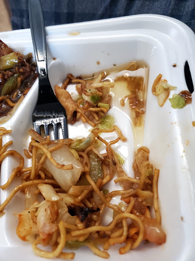 My beef and broccoli had the tiniest ONE piece of beef in it, thats it!!!! The broccoli and my chicken/green bean entrees were cold and they did not give us soy sauce or utensils. Pretty disappointed....The picture shows the 1 piece of beef and I spread out the broccoli looking for more... and nothing was eaten yet.