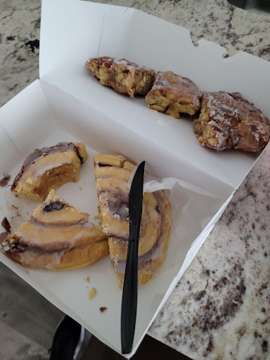 After having lunch, my family and I were craving something sweet . I was driving around Rockport and I stumbled in to this bakery . It was very clean and the atmosphere was very warm and inviting and the smell of fresh baked good was out of this world . We ordered donuts, cream cheese danishes and two of there huge cinnamon rolls with a cup of fresh brewed coffee. My kids love the donuts my wife and i shared half a danish and half a cinnamon roll and we all were very satisfied with everything it was fresh made moist and soft i highly recommended this place. We will be back again .