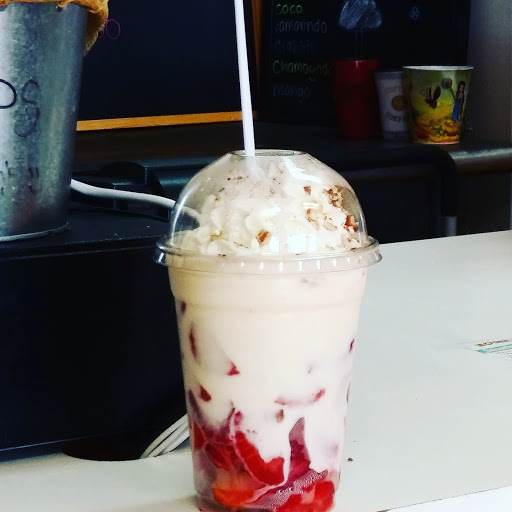 Amazing food, friendly staff, decent prices, cute little shop I recommend Fresas con crema & the elotes