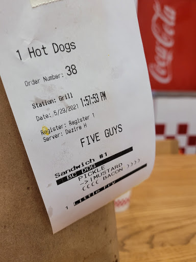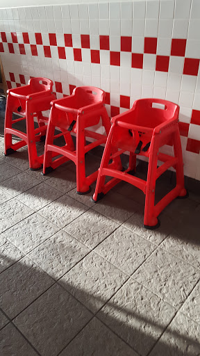 Ive been to several five guys. This one does the one cup fries not the tradition known for tons of fries. Burgers are good. Staff is not super friendly.