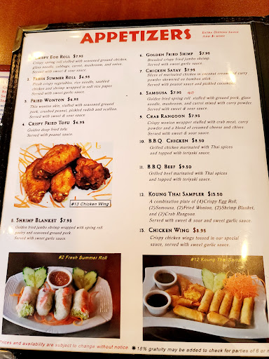 After having lived in Canada most of my life, I was spoiled by the competitive market there for authentic Thai cuisine. Moving to Texas, finding THE ABSOLUTE BEST Thai food I have had to date (having grown up on it) was certainly an unexpected, pleasant surprise to find Koung Thai so close to home. Consistently the service here has been more than outstanding, going above and beyond in all facets. Regarding the menu. You would be hardpressed to find better Thai food in the state. Always fresh! (the chef even grows his own peppers in a greenhouse) A vast selection of popular and less well-known choices, healthy as ever, to suit nearly everyone. Spice enthuisiasts will love this place as well, as some of their dishes can go far beyond the infamous "Thai Hot." AMAZING food, GREAT service, and truely a gem of an establishnent!!