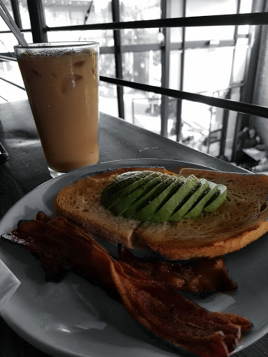 This cafe was pretty cool. I like the atmosphere. I got there when it opened to beat the crowd and have some quiet. The service was good. You order at the registwr and they call your name to pick up drink and food. I ordered a coffee and two breakfast dishes, the avocado toast and the french toast special. The avocado toast with fried egg and bacon was really good. The french toast was just ok. The coffee was good. I like how it feels so relaxing in this cafe. Not sure what it is, maybe the all wood interior and open space. Id recommend this joint.