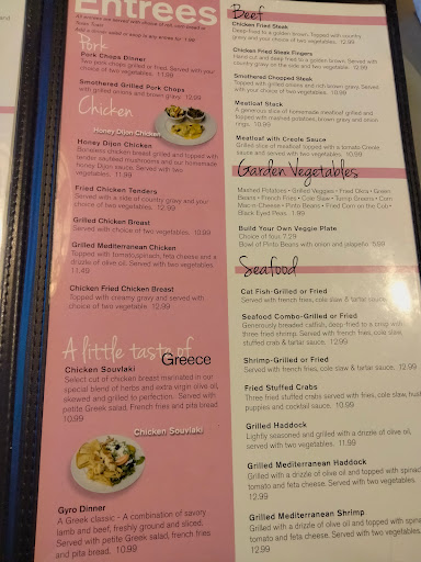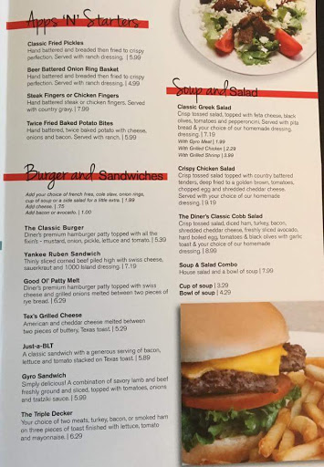 Our family has had several meals at the diner now. We have not found anything we do not like and have never had bad service! From breakfast to burgers to chicken fried steak to pork chops to shrimp! We have tried a lot! The homemade desserts are awesome and hard to share! We will be back many times!!