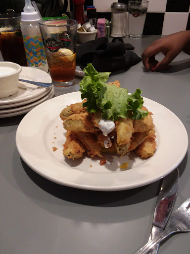This place is sooo close to me I really wanted to love it. We tried dinner and I am hoping my stars go up after we try breakfast. The good- those fried pickles are on point If that is all I ate this place would have 5 stars! Oh and the green beans are awesome. The meh - chicken fried steak, burger and chopped steak are what we ordered I could into what was right and wrong about each but it doesnt matter the were just meh. Nothing horrible but nothing really great had much better The bad - I really hope the Mac and cheese is not homemade because of it is someone just wasnt raised right. It taste like it came out of a can it was horrible I would never eat it again. The chicken strips were also pretty terrible my kiddo ended up not eating. We tried desserts too. I was hoping for the diner dessert experience.... Nope , pie tasted frozen... And how do u ruin strawberry shortcake? It was pretty bad.