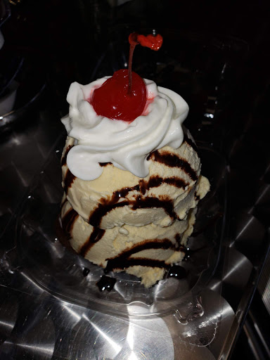 To pricey, they were out of so many different ice creams that were pictured on the wall. Did not live up to their name. They need to have a variety of sizes. Also ordered the funnel cake which was good but way to much for one person. They need a smaller portion. Table was extremely wobbly.