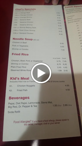 I have eaten at plenty of Chinese restaurants . This one was disgusting . All 3 of my sésame chicken plates were dried out the chicken looked dehydrated instead of fresh. The rice was more Mexican rice than Chinese rice. I gave it a 2 because the only food I considered eatable was the crab meat Rangoon. I paid 25 dollars for this it wasnt worth 2 dollars. I will not go back there the sad thing is . This was my first visit and it will be my last visit. I cant speak on the other food there but if you go dont get chicken of any kind there .