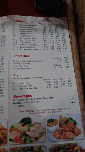 I figure I should write a review since Ive been going here for so long. This place gets 5 stars for its good but despite it having a drive through this is not a fast food restaurant. If you want your food fast call in your order and your can pick it up through the drive through. The hot and sour soup is actually what it is suppose to be and not overly sweet like most restaurants make it They actually fry their rice. I love there chicken fried rice I dont really eat inside this place cause its very old and could use a face lift. The remodeled the outside about 5 years ago but the inside is still very old school generic Chinese restaurant.