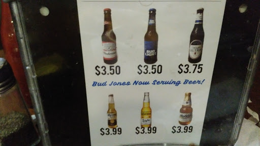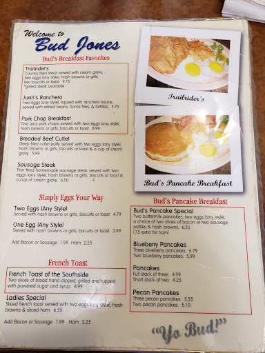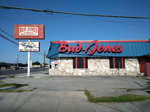Bud Jones has been around since 1958. So have I, and although I dont eat there often I have been going there for quite a few years. No one will ever mistake Buds for fine dining, but it has always been a consistently good choice for basic fare. I brought my mother along, and heres the scoop from todays visit. Service - 5 Stars We arrived at 5:00 PM, so just ahead of the evening crowd which started to file in shortly after. We were promptly seated, and the waitress appeared after just a few seconds to take our drink order, which she then brought out after only a couple of minutes. We opted for an order of Super Nachos as an appetizer, and I ordered "The Largest Enchiladas in Town" while my mother selected the Country Fried Steak. The nachos came out quickly. Once we finished them the empty plates were immediately cleared away and our main orders arrived just moments after. The waitress was friendly, polite and attentive. Food - 4 Stars The Super Nachos were tasty. Perhaps just a little on the soggy side, but not overly so. The Jalapenos were a bit too mild for my taste. Could have used a little more kick The Enchiladas were very good, and the portion size lived up to its name. Not sure if they are actually the largest in town, but they were enough to fill me up. The rice and beans were average. My only complaint would be the tortillas. Hard and dry. Mom reports the CFC was good, but nothing outstanding. She liked the cole slaw, the fries were OK but a bit soggy. Total cost $36.79 +tip for a large appetizer, 2 main courses and 2 drinks. Maybe Im out of touch, but seems just a bit high for Bud Jones fare. $$ Ambiance/Decor - 3 stars What can I say, its Bud Jones. The building is old, its been through a fire and a few remodels. Its clean and functional, and someone actually played Pink Floyds "Shine On You Crazy Diamond" on the jukebox. That and a plate of enchiladas were enough ambiance for me. Tilll next year sometime.