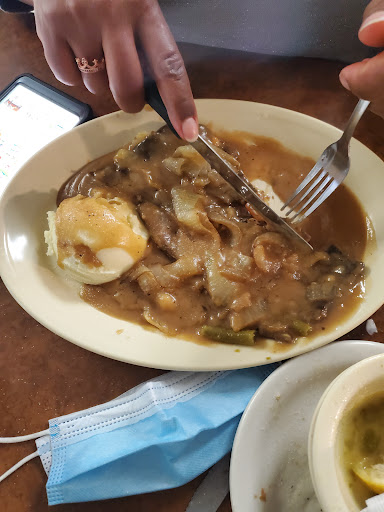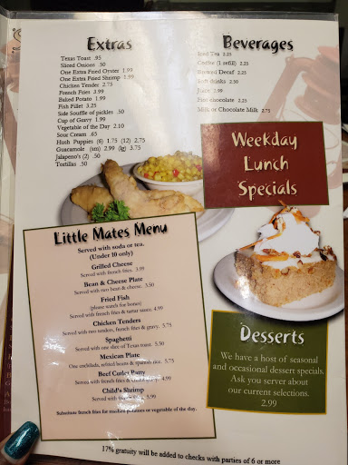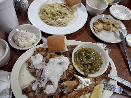 Where should I begin.. The building looks like it should be condemned.. When you walk in youre assaulted by the overwhelming smell of raw fish..its dirty and run down.. Ive been in places where it doesnt look great but the food is awesome and this place has been there for 55 years so we thought wed give it a try.. Wrong..there must have been a time when it was good but not anymore.. I got the turkey and stuffing dinner.. The stuffing was like wet sand..the potatoes were instant and the gravy was canned..my daughter got a cheeseburger and fries.. Her burger was so thin and overcooked she couldnt chew it..my son had the grilled cheese and fries..some of his fries were raw and some burnt..Im not even sure how thats possible.. My husband had the chicken fried steak and onion rings..the rings were cold and tasteless..the staff was nice enough but the food was literally inedible..Im not sure how anyone who has reviewed this place recently gave it a good review.. The bathroom was horrific.. Tiles broken.. Floor was sticky and to top it off there were roaches in the light fixtures on the ceiling.. The few bites of turkey I ate made me sick..do yourself a favor and dont bother.. Im not sure how they pass with the health department