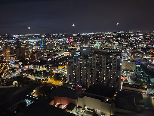 WOW! The SERVICE and ATMOSPHERE were impeccable. Food is just ok, but remember you are paying for the experience so you should expect as much. This is a place I would go back to about once a year or maybe once every two years. It is definitely made to impress but if you are after awesome, high quality cuisine, this is probably not the place for you. If you are visiting from out of town and want a special experience, I would definitely check it out though. Two ribeye steaks but both were very fatty – yes, I realize ribeye are not lean cuts of steak but this is my favorite cut and I am very familiar with it. As I ate the steak I was comparing it to the less expensive Saltgrass (of the same Landry’s chain) and I realized the Saltgrass quality was MUCH better. Shrimp pasta dish was good but just not a lot of flavor. The pièce de résistance was the Hot Chocolate Lava Cake – it was DEFINITELY the bomb, but it takes 30 minutes to prepare so let your server know ahead of time if you are going to want it. We let him know when we placed our entrée order and he timed it perfectly. Service and consistency at Saltgrass is just as good but again, this place is intended for its views of the city and its atmosphere; it did not disappoint in that aspect. Here are a couple of tips for you: Make reservations and arrive early in case there is a wait for the elevator. Go inside at the ground level and look for the check-in desk for Charthouse. Otherwise you may find yourself waiting in line for the elevator to the observation deck for 30 minutes or more. Ask questions and find the right elevator to Charthouse or the bar – very little wait, it includes a trip to the observation deck and it is free. If you are just going to the observation deck, there is a charge. One final note – our server (Nicholas) was awesome! Very courteous, responsive, and was able to describe EVERYTHING on the menu including the chef’s special creations of the evening. We even got a special customized desert to celebrate the evening thanks to him. I attempted to give feedback on the Chart House website but this location is not included in the guest feedback section. If you are reading this Charthouse, you need to do everything you can to keep this guy on staff. He is the reason we will return – he really sold the whole experience!
