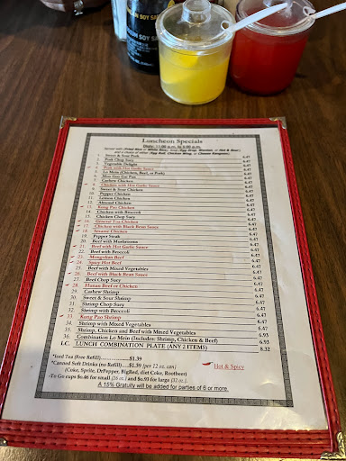 From the parking lot the big China Star sign looms large over the parked cars like the salt water worn and faded name on the side of some old dockside merchant ship. .I.e., I think the restaurant has been here for a while. I had to check twice to make sure we were in the right place upon entering as the speak easy level of the interior light had us quickly doffing our sun glasses or risk bumping into the furnishings. New diners entering the place would send a short burst of searing sunshine through the dining room . And to read the menu, I was fortunate enough to have a flashlight app on my cell phone. We were quickly seated by a young Asian girl, our waitress, that I nicknamed Mercury. During the meal the service she provided was nothing less than fleet of foot and, showing my age, more like a 45 lp playing at 78 rpms. This description applies to both motion and speech which was not displeasing as proferred with a smile. The interior looked a little tired and worn, but it was in keeping with the era from which the prices were established on the lunch menu. Where do you get a glass of tea for $93 and most plates for under $5 or $6!!! The hot and sour and wonton soups were good and very usual. The egg rolls were also good although they were a slimline version; rather the size of the spring rolls usually served by Vietnamese restaurants. The fried rice was unusual in that it was very moist and did not seem fried at all. The beef lo-mein noodles were good, but the beef was a little tasteless. The Mongolian beef was seasoned well in its brown sauce, but the meat could have been a little more tender. And the serving size . . . lets just say that if you leave the place hungry either you are Adam Richman or its your own damn fault. I would venture to say that if the restaurant does not change its prices, continues to save on electricity, and maintains the same ambiance, it will probably be here for another 30 years or however long it has already been in this location.
