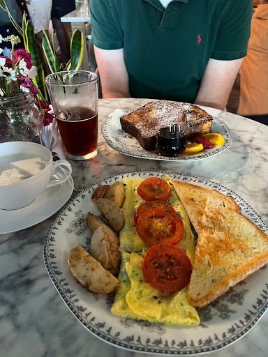 To find this place was one of the best things on our trip to San Antonio. My husband and I were looking for a place which is unique and has good food, and this was exactly what we found there. The place is beautiful, well decorated and cute, we felt very cozy there. The staff is truthfully friendly, even though they are not expecting to receive a tip. All the food is chosen and paid at the cashier and the staff brings the coffee or other items to your table. The french bread is homemade and fresh because it is made on the same day when it will be sold. The owner talked a lot with us and made us feel at a friends house. For sure we will come back again.