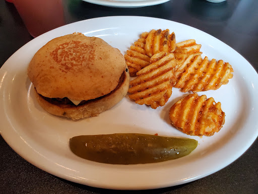 Asked waiter if beef fresh or frozen for burgers. Assured it was absolutely fresh, just made patty...No burger out of a bag, with premade machine frozen prints on meat.Tasted dry no flavor...bit of added smoke flavor. Trout orang almondine was sweet. Good filets and fresh..saw no need for it to have sweet syrup laden across it. Salads lack texture...tiny diced tomatoe on top. Tues Chic-fry Chic is the best...only thing thing worth making trip for..dining room needs sprucing up, as well.