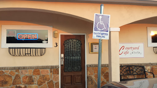 Courtyard Cafe is a wonderful experience! My husband and I went for breakfast on Sunday, and it was great. I got peanut butter cream and banana pancakes with potatoes and bacon. The pancakes were huge. The peanut butter cream was nice, soft, and easy to spread. The bacon was thick cut and delicious. I was surprised how tasty the potatoes were. They were crispy and well seasoned on the outside, and soft and light on the inside. My husband got the southwestern omelette with potatoes, jambalaya, and a biscuit with jalapeño jelly. The jelly was surprisingly tasty! The biscuit was fluffy as well. My husband was a big fan of the potatoes for all the reasons listed above. The jambalaya was not authentic Louisiana jambalaya, but it was still pretty great. My husband was disappointed that the chocolate milk is just regular milk with chocolate syrup in it, but everything was wonderful besides that. Restrooms: Clean and well maintained Parking: Ample