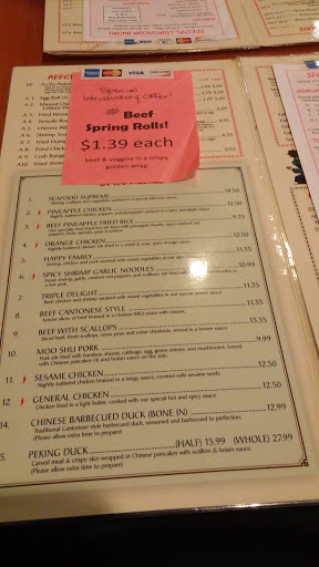 Last visit was probably around two decades ago when it was a convenient location for a lunch break near work. Times, jobs changed, and I soon forgot about Ding How, or the restaurant on stilts as we called it. As I walked through the doors again, the surroundings of lacquered wood art and Chinese decor began to look familiar. We ordered appetizers from a flyer on the menu that touted beef spring rolls. Not having had it in more years than I have fingers and toes, egg foo yong was a lunch selection that immediately caught my eye. My wife craves lo-mein and so went our orders in compliance. We also ordered a cup of soup; won-ton and hot and sour. The spring rolls came first. I am used to spring rolls the size of a fat cigar. These were the size of large egg rolls. Golden brown wrapper and full of beef, another rarity, these crispy tubes were delicious. Both our soups were above average. As we sat there waiting for our meal, we looked around to see what dishes other customers had ordered. Next to us, two dishes were served to the patrons that appeared to be family orders. The plates were mounded high with morsels of fried chicken and rice and the other with beef and vegetables. Both dishes looked mouth watering. When our entrees arrived, my wife had the same huge mound of noodles, veggies that we had seen next door and I had three very large egg foo yung patties! We had noted that the prices were slightly higher than we were used from other Chinese food restaurants in the area. Now we knew why! The portions are large and the quality is high. The food was some of the best Chinese we had had. Tried as we might to finish our dishes, almost half went home for some very good left overs later. So . . .we have jre-discovered a new / old favorite and are awfully glad of it.