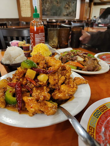 They give you a lot of food, but the prices are kind of high. (10-12 dollars a plate), and I think China Star has lesser prices with the same amount of food. Their chicken is pretty good, but the shape of it is different, not round like most chinese restaurants (I dont know why). The thing I really like about this place, though I havent dined in there yet (I have only ordered take-out) is the lovely interior decorations. There are Chinese paintings and engravings and statues all over the inside, and they are very exquisite. It is a small building, with the staff dressed very casual, so it is a bit awkward, but its really nice to look at. The staff also seems very friendly and reasonably accommodating. I asked for a cup of water while waiting for my takeout and they happily obliged.
