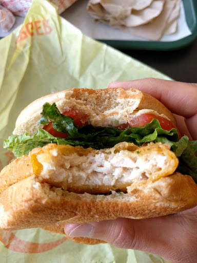 Great vegan food! The drive thru is speedy. Ive ordered everything. The kale salad is awesome it has a lemony dressing but its a balanced sweet and sour. The coconut ice cream as well. The brownie is very sweet, nutty, moist and according to my husband has a fishy aroma. (It didnt occur to me to smell it) I agree though. The chicken look like the gardein kind from the grocery store though. I dont order the fries theyre plain. Theyre lemonaid has chia seeds its awesome and so is there tea.