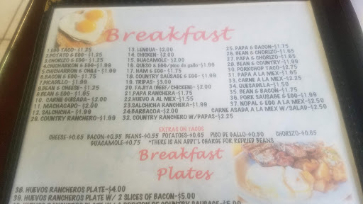 We came across this place after getting lost looking for the missions. It seemed to be a popular place to go after church. Anyway, it was the best food we had all weekend in San Antonio. Their taco menu is fantastic - about thirty tacos deep with a variety of options for the herbivore, carnivore, and omnivore. What really sets the place apart is the tortillas. Theyre thick and floury, unlike the flimsy elastic saucers you find at most restaurants. Dont worry about butchering the Spanish and ordering the wrong thing; whatever they bring out will be tasty. I recommend getting the apple soda.