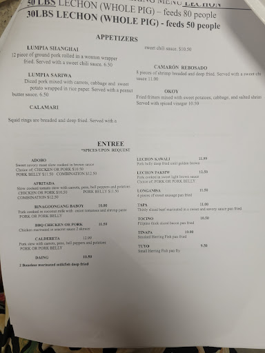 Ive been to every Filipino venue in San Antonio and even some in Houston and I have to say, of ALL of the 5 or 6 choices available here in SA, this is by far the BEST Filipino food. They offer the most extensive menu of freshly-made Filipino food. Eating there for dinner is like going to my nanays or titas house. They are so friendly to be around and cook right in front of you. Its as if you are in the kitchen watching your nanay cook. And the food is better and fresher than any other Filipino restaurant in SA. As if that werent enough, they have an awesome Karaoke and dance club at night with beer, food and a huge variety of people of all ages...old and young! Its just like in the Philippines. Finally, not only is it the BEST food and the MOST fun Karaoke, but its also the CHEAPEST! Both the food and the prices are really great, better than Sari Sari, Mekeni, Lillys and Rice put together!
