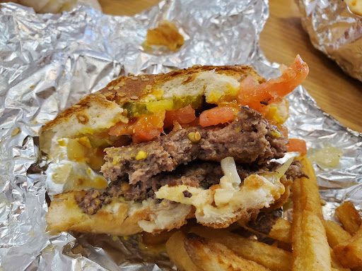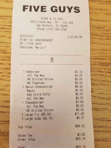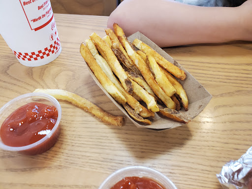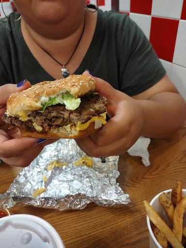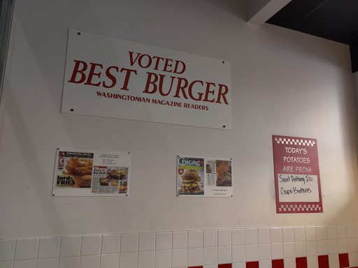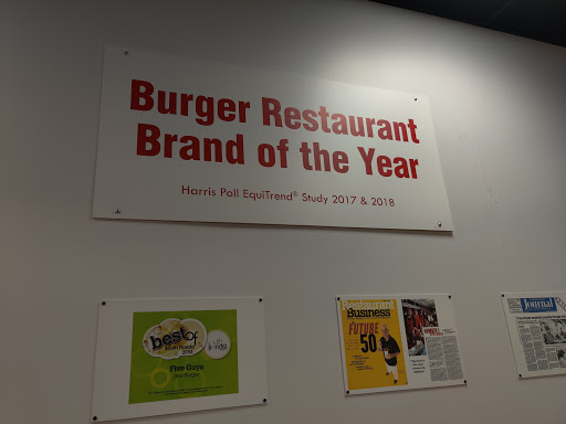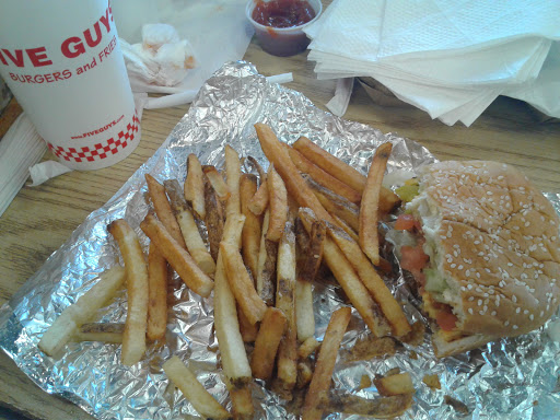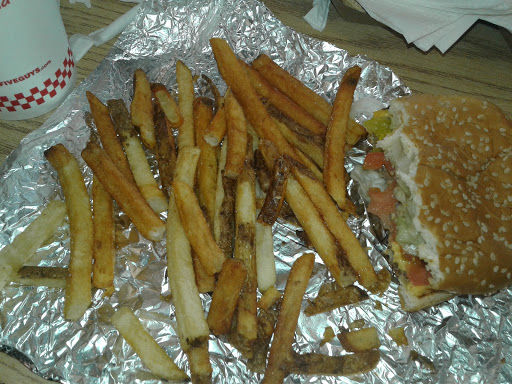 burgers are the best iv ever had !! fries are a little hard but I think they were not fresh !! other then that best in san Antonio !! well until in and out burger opens !!! then it will be a very close competition!! but 5 guys is a little expensive.. if you go in with 2 people expect to pay over 20 dollars kind of outrages but hey what can you do .