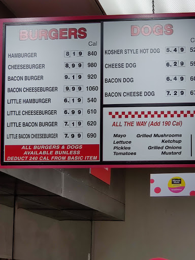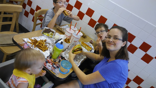 Honestly ok burgers and fries and shakes... but kind of expensive for what it was. Boys did really like the hot dogs. Peanuts while you wait(which I dont get at all and they werent very good). My husband is on the Keto diet (so no bread) and they offered an option with all of it in a bowl of sorts with extra lettuce. Lots of topping options and mixins options for shakes. The soda fountain was one of those Coca-Cola super choices ones that we love! Seating was cramped and uncomfortable though (COLD metal chairs). At least the bathroom has a changing table.