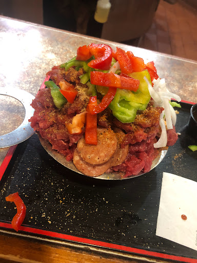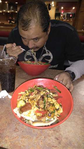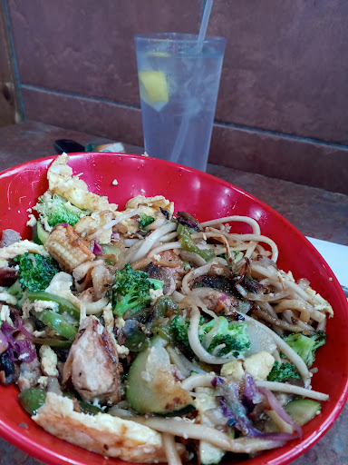We went in with a party of six for my birthday and were told we couldnt be seated for about 15 minutes, even though there were LOTS of tables available. We let that slide though. Then once were seated, (at our filthy table) our waitress Sheila tells us that since theyre short one cook, the manager said they wont prepare meals for parties of six and there was nothing she could do and HOPEFULLY the other cook would get there. Keep in mind that this place wasnt busy and probably only at about 1/3 capacity. Meanwhile about 4 employees are just hanging out in the bar area. Then shes trying to ramble on about how the food works and the different bowls, and these little cards you have to fill out, and how this bowl is only for sauce, and how theres only 4 bowls you can order from the table and the rest you have to go up and get your self, and by this point Im just over this place. Could you make food more difficult?? We left and went to Willies Bar and Grill and it was awesome. So do yourself a favor, AVOID THIS PLACE AT ALL COSTS!