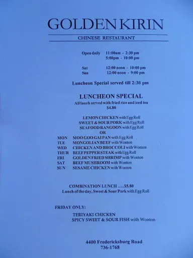 I really dont have anything to complain about concerning Golden Kirin. The food was a fair price, there was plenty of it, and it tasted fine. Granted, the menu is a bit simplistic and the food isnt superb, but still, its an okay place. I ordered beef lo mein. The beef was a decent cut, in good amount, and had a nice flavor. The lo mein was a bit tougher than expected, but the sauce and veggies blended well with it. Ive had better - even significantly better - lo mein with deeper flavor profiles, but Ive also paid twice as much for it. The wife had beef with sprouts, which was a similar dish but with a different sauce. We both thought our entrees were above average. The weakest link was the pork fried rice. The only significant flavoring was the soy sauce and/or sesame oil. The veggies, pork, and other accompaniments were in minuscule amounts. In short, if youre hungry and short on cash, Golden Kirin would be on my shortlist. Otherwise, Im going to go Sichuan on N.W. Military.