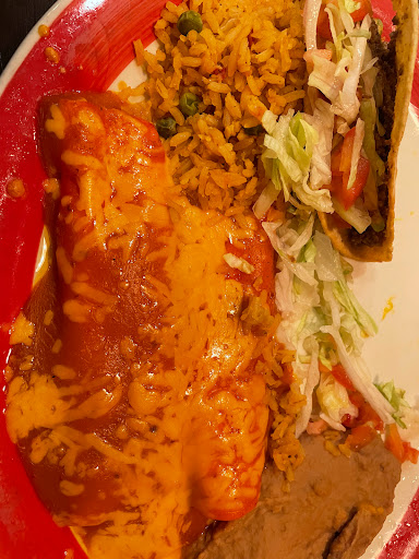 You get the feeling that this is a chain restaurant the minute you walk into the cavernous restaurant abuzz with television sets, central bar, and several rooms for dining. The same feeling arises upon review of the menu (and the prices). All of your average Tex-Mex dishes are a least a couple of dollars more than you will find the same dish at one of hundreds of local Mexican food restaurants. Chips and salsa were served, but found to be of HEB quality (i.e, store bought packaged chips and bottled salsa). An order of nachos that happened to be 1/2 price on the bar menu were pretty average; two corn tortillas slathered with rather tasteless beans and topped with cheddar cheese and an usual tasting picadillo then cut into quarters. The combination plate of two cheese enchiladas, rice beans and a crispy taco (wanted a puffy taco but that was a $2 substitution charge) was all together sub par. I love cheese, but the enchiladas were swimming in it. Definitely overkill. The taco had the same unusual tasting picadillo as did the nachos, the same lack luster frijoles, and decent garlicky rice. I was underwhelmed to say the least for a plate that had an almost $11 price tag. I dont like to base a review that heavily on price, but when they are such a huge variety of choices for Tex-Mex food in San Antonio,that have wonderful tasting food, price becomes a critical qualifier in selecting one (unless you just like paying for the ambiance like Casa Rio on the river). For someone that has sampled over 50 local taquerias, Tex-Mex chains and mom & pop restaurants, the low quality over price ratio here is definitely sufficient to discourage any return dining.