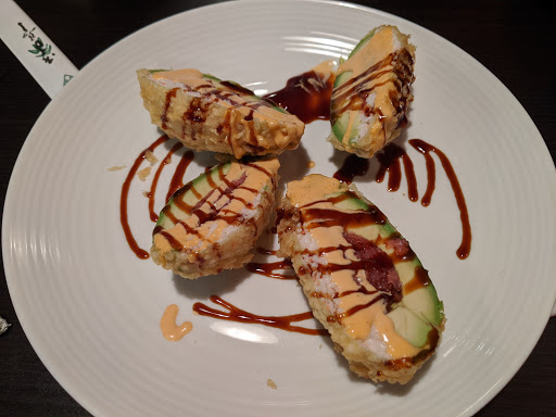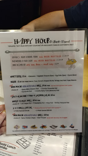 I arrived here on a GroupOn deal and wish I hadnt. Its a very quiet sushi house in the middle of a retail strip next to an intersection under construction. The decor is marred by a massive scrolling LED message trying to remind everyone that its happy hour while the music doesnt fit at all. We almost walked out before sitting down but continued anyway, ordering 3 special rolls for $28 - the first tasted a little funky, the second was battered unpleasantly, and the third was okay. All the food generally tasted too spicy with too much wasabi everywhere. The wine pours are very mean for the price (maybe a 4 oz pour of Kendall Jackson chardonnay for $7.50). The service is all over the place - you get a different person constantly so theres no real flow to the meal. I hate to say bad things about local businesses but there are really better options around for sushi - including the $30 GroupOn, it was still $54 with tip for a meal that my wife wouldnt eat and I didnt feel so good afterwards for eating. I could honestly get better sushi at Whole Foods down the road.