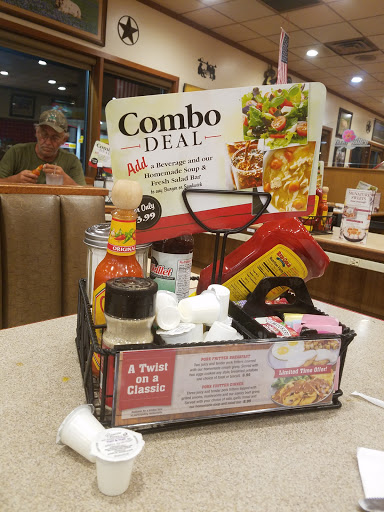 Iron skillet is worst we have ever eatin at. The salad bar was a mess. Empty bowls had not been tended to in who knows how long. Veges mixed with other things dressings very low in containers. Soup pot was emtpy and crusted up. Server say they were out of soup didnt know if they were putting any more fresh out. Waited 15 min to be acknowledged by server. Then server did not return we had to go get our own check. Petro was ok. Restraurant is different story..
