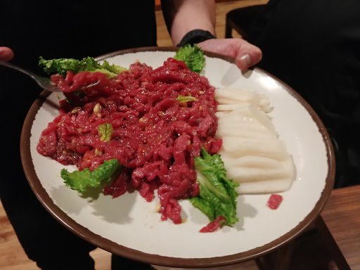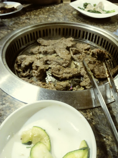 The worst restaurant experience ever! If you’re not Korean, you’re just screwed. The Korean lady waitress was so rude! She can’t speak English and was rude to top it off!! She acted like we were inconveniencing her in some way. She didn’t bring the soybean paste for the meat, or the second beer my husband asked for. We asked for refills on side dishes and she missed a few as well as the lettuce. By the time she brought the items out, we were done with the meat. And it’s not like you can wait. Meats grilling and if you wait on her the meat will burn!!! Why send a non-English speaking waitress to a non-Korean speaking table! She was rude to the table next to us as well. Meat was way too expensive! $28.99 for 2 pieces of kalbi rib, $17.99 for 2 slices of pork belly. Really that’s supposed to fill up a person?!!! There were 5 of us and you figure for $100 order of meat you’d think you’re okay. However, couldn’t ask questions to the non-English speaking waitress!!!!!!!! The kimchee soup sucked! After arguing with the manager, she finally admitted that the kimchee they used was way too ripe and was willing to not bill us for it. However, she wasn’t willing to understand that $17.99 for 2 pieces of pork belly was outrageous. She was bartering meat prices with me. You’ve got an angry customer and you’re trying to barter prices lady?!!! Finally, just ended up agreeing to pay $12.00 instead of $17.99 for the pork belly so I could get out of that place. $6.00 for a pork belly…>: This place and its employees are absolutely clueless to customer service. Save your money and go to Koreana restaurant. You’ll get better food and better customer service there. Try the Seoul Oriental Market as well. Much, much better than this joke of a place! The only downside is those 2 places don’t offer the grilling experience, but you’ll be saved the aggravation and your sanity.