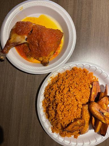 I love african food, so when accidentally found this place, was very excited to try it. We went there for a dinner and ordered egusi soup with goat meat and fufu, jolllof rice with goat meat and fried plantain, beef suya. The food was amazing!! My egusi soup was best I ever tried. The food was good spicy and had rich taste (this is the way African food should be). I really enjoyed my food. Portions are huge in here, 2 people can easily fill they bellies from one plate. And knowing the amount of food you getting, the pricing is not too high in here. We literally had to get boxes to go because couldnt deal with the amount of food weve got. Plus they give you one bottle of water for free with your entree. Place is not very big, but quite cozy. They have 2 TVs and play some nice African music. Client service is very good. I will definitely come back here again. I would definitely recommend this for people who want to try African (Nigerian) cuisine.