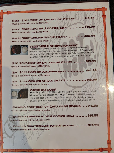 I ordered the egusi soup, jollof rice and pounded yam and it was all delicious. I thought it was authentic and freshly made. The server was professional and offered suggestions. I will return and highly recommend this African Restaurant to anyone who cant travel to Nigeria for a delicious bowl of Egusi soup. Keep up the good work guys!