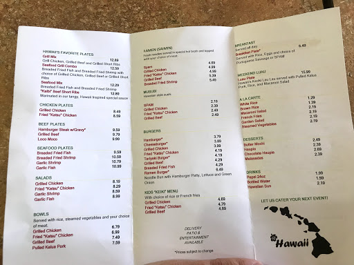 Very unique to Texas cuisine. I recommend the mix grill plate or the chicken katsu with extra katsu sauce and double white rice. The chicken katsu is a large order of chicke cut into pieces that has a panko style breading. The order fills up a to go box and will definitely fill you up. On weekends they serve even more traditional Hawaiian dishes. Highly recommend for someone wanting a different style cuisine. The restaurant has always been extremely clean and well kept on every visit.