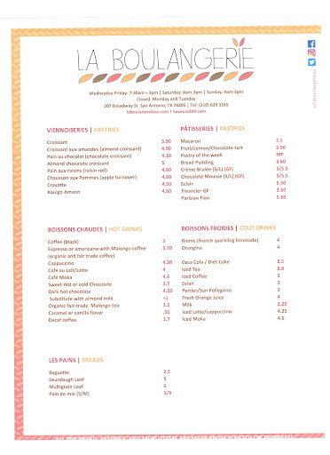La Boulangerie is located downtown but is a few streets removed from the crazy tourist trap part of the Riverwalk. I visited on a Saturday morning and although the street it was on seemed kind of dead from the outside, the inside of this bakery was bustling. And let me tell you how authentically French it was. My friend and I came in and gawked at all the desserts. As we decided what to order and were waiting in front of the pastry case to be served, another man walked in, started speaking French fluently to the chef, and promptly cut in front of us. Okay, not a huge deal. Well right after he ordered and paid for his food, before we could get a word in, the lady who took his order disappeared back into the kitchen without as much as an acknowledgment of our presence. Pretty sure we were invisible because we didnt speak French. Minutes passed, and then she came out and promptly served another lady who bought 4 giant baguettes. She disappeared again. A few more minutes passed. Finally, she popped back out and took our order without any sort of apology or mention of the wait. Everything, from the chefs to the Parisian rudeness to the deliciousness of the chocolate almond croissant I picked up -- were all amazingly authentic and such a surprise to find in this city. Be sure to stop by if youre in the area! I cant wait to pay another visit and try some more of their baked goods.