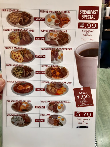 Hearty breafast, good size tacos and plates. Not as tasty as others though Had bean cheese barbacoa potato and egg and chiliquiles plate