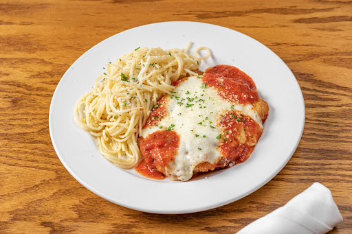Really surprised by the positive reviews after my disappointing visit. Be careful entering the parking lot at night. Poorly lighted and you have to be careful to avoid steel posts blocking driveway. Building and décor getting shabby and a bit dated a la 1970s or earlier? Saturday night at 8:00, few customers, though. Friendly greeting from employee sitting at a table near the front door rolling dinnerware sets..hmm. Wait staff was friendly and prompt. Bread was good. Wine brought promptly. Dinner salad was shredded like cole slaw..house (hard to get and keep on the fork). House (Italian?) dressing was served in side dish and was, oddly, as thick as mayonnaise. Sample spaghetti was watery and sauce was sour from overcooking. Sample cheese pizza was OK, but nothing out of the ordinary. Ordered lasagna and chicken cacciatori. Both dishes used the same sour, overpowering marinara sauce as the spaghetti so it all tasted the same. The lasagna was almost cold in the middle, cheese was unmelted and the consistency of cottage cheese. Chicken recipe was a real loser. Undercooked vegetables. Just plain terrible..left most of it on the plate. This restaurant reminds me of a once excellent local dining spot that has declined over the years due to inattention to basics or lack of owner interest. Im afraid its just surviving on its old reputation. Maybe this place has some trademarked dishes, but they certainly are not what we ordered. Sadly, I cant recommend this restaurant at all.