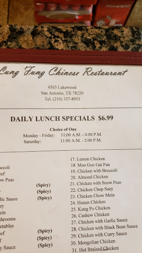 During our recent San Antonio trip, we were in search of chinese food. Since I am not from the area, I asked the clerk at our hotel where is the best. She recommend this place to me. I dont know if I will be able to eat chinese from anywhere else. Everything was wonderful!!! I had sweet n sour pork, lemon chicken, hot n sour soup, fried won ton, and fried rice. Hmmmmm,mmmmm... The sauces came seperate from the meats, which I truly appreciated. That way i could moderate the amount wanted. The lemon sauce for the lemon chicken taste like it belongs under a meringue in a shell. Thanks Nancy for the tip!!!!