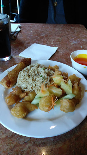 The food here is delish. I had the egg drop soup and the General chicken. The portions are good, prices are great and the value overall is good. The only complaint would be the cleanliness. I managed to drop my phone between the wall and the side of the booth. I stuck my hand between the booth and it was dirty. Then I had to stick my hand between the wall and the booth to get my phone and trust me it felt like no one had been in there in quite a while. While I have no complaints about the food, service, portions or price I certainly would recommend some deep cleaning on the carpets and pull out the booths every now and then.